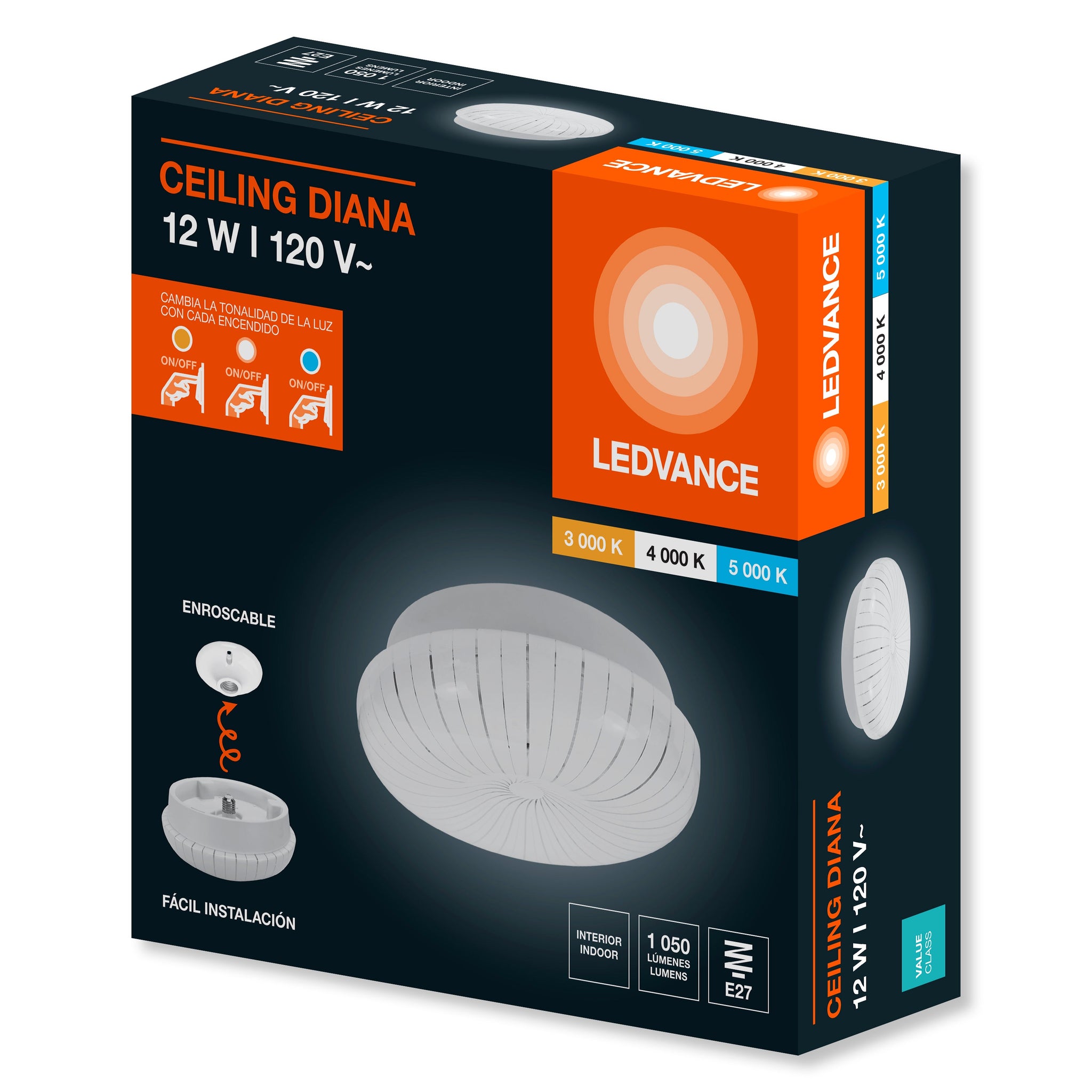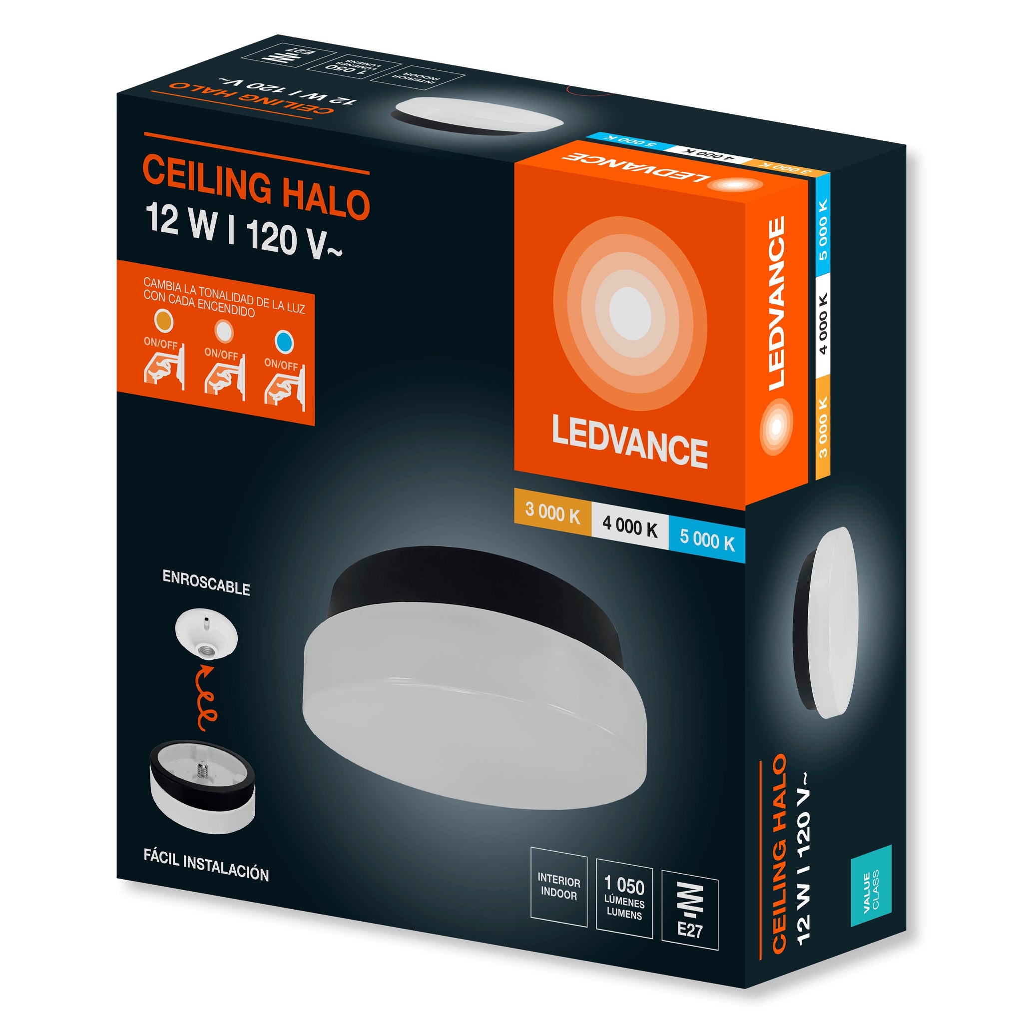 • 3 tonos de luz en 1 misma lámpara, cambia con cada encendido