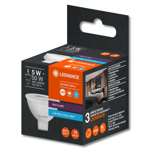 La familia LED MR16 Value son ideales para iluminación de acento en aplicaciones residenciales y comerciales, disponibles en temperatura: Luz Cálida (2700 K), (3000 K), Luz Neutra (4000 K) y Luz de Día (6500 K).