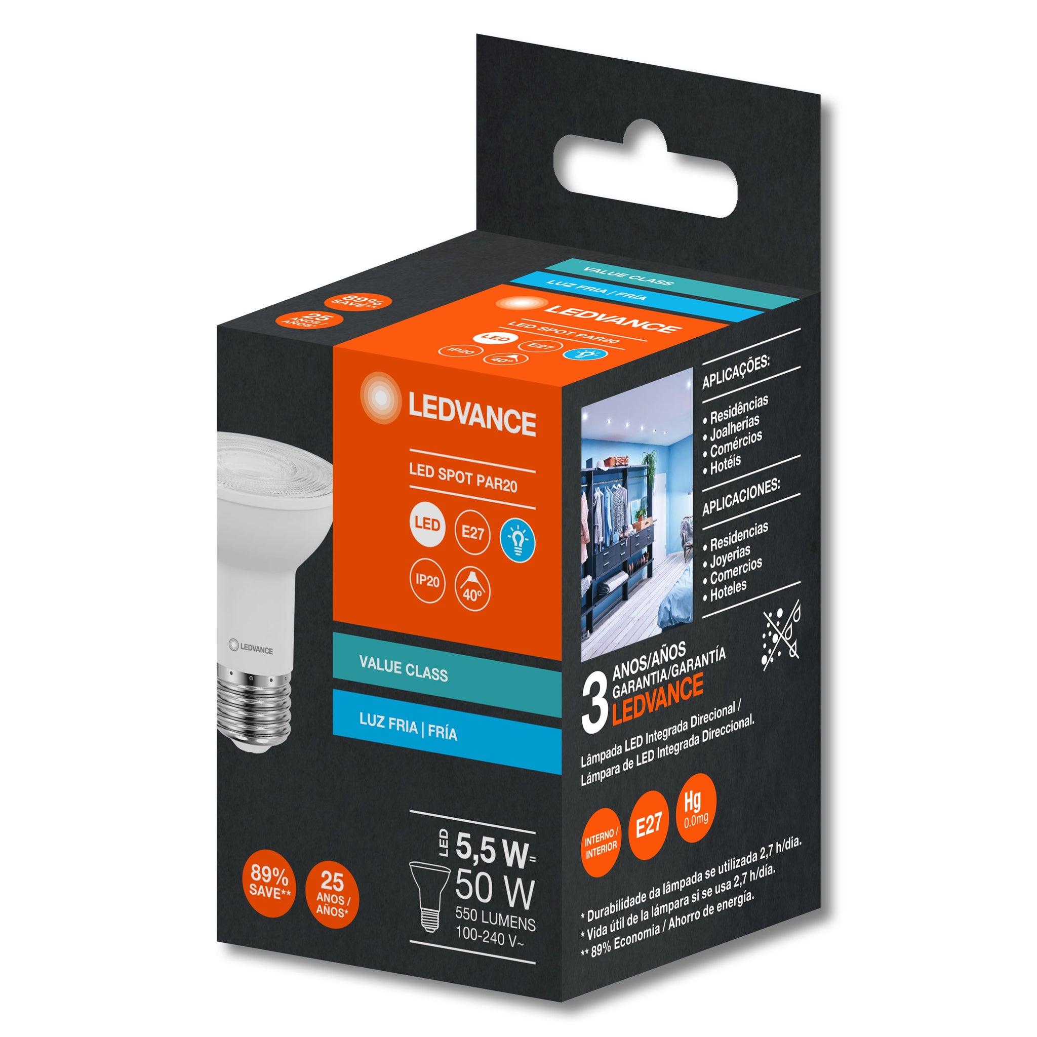 Las lámparas PAR20 VALUE garantizan una correcta iluminación de acento en objetos o elementos arquitectónicos. Disponibles en Luz Cálida (2 700 K) y Luz de Día (6 500 K).