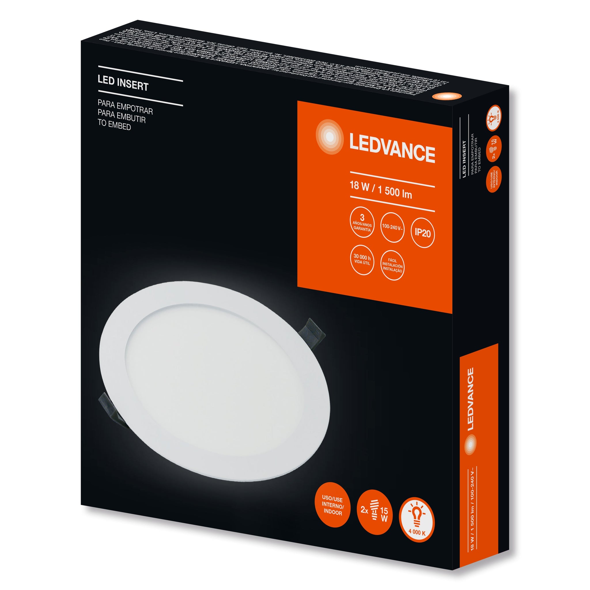 Luminaria de techo para empotrar con diseño ultra delgado y con una distribución de luz homogénea. Equipada con LED de alta potencia. Disponible en versión cuadrado y redondo con tres temperaturas de color: Luz Cálida (3000 K), Blanco Frío (4000 K) y Luz de Día (6500 K). Instalación fácil y rápida.