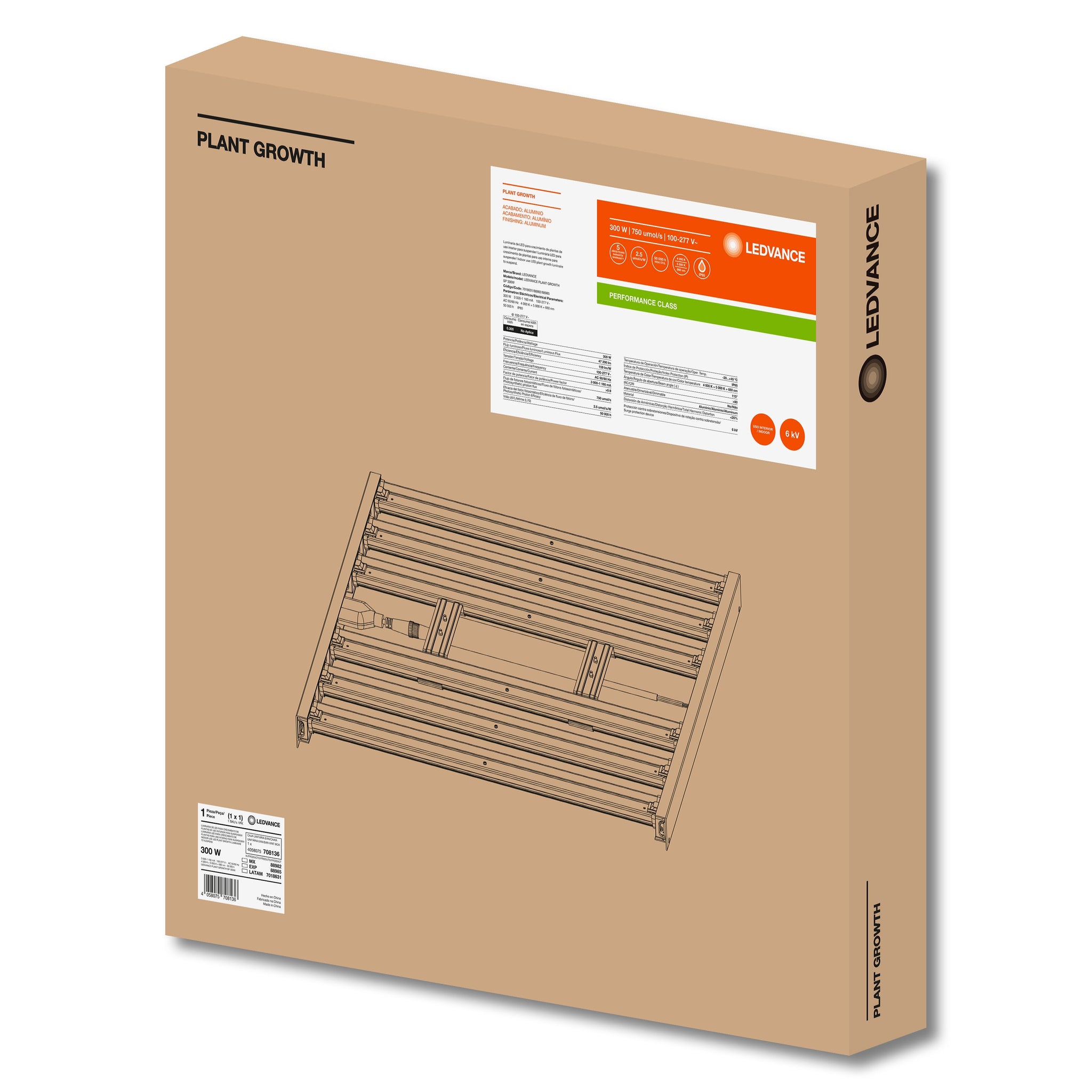 Luminaria de LED para crecimiento de plantas de uso exterior para suspender.