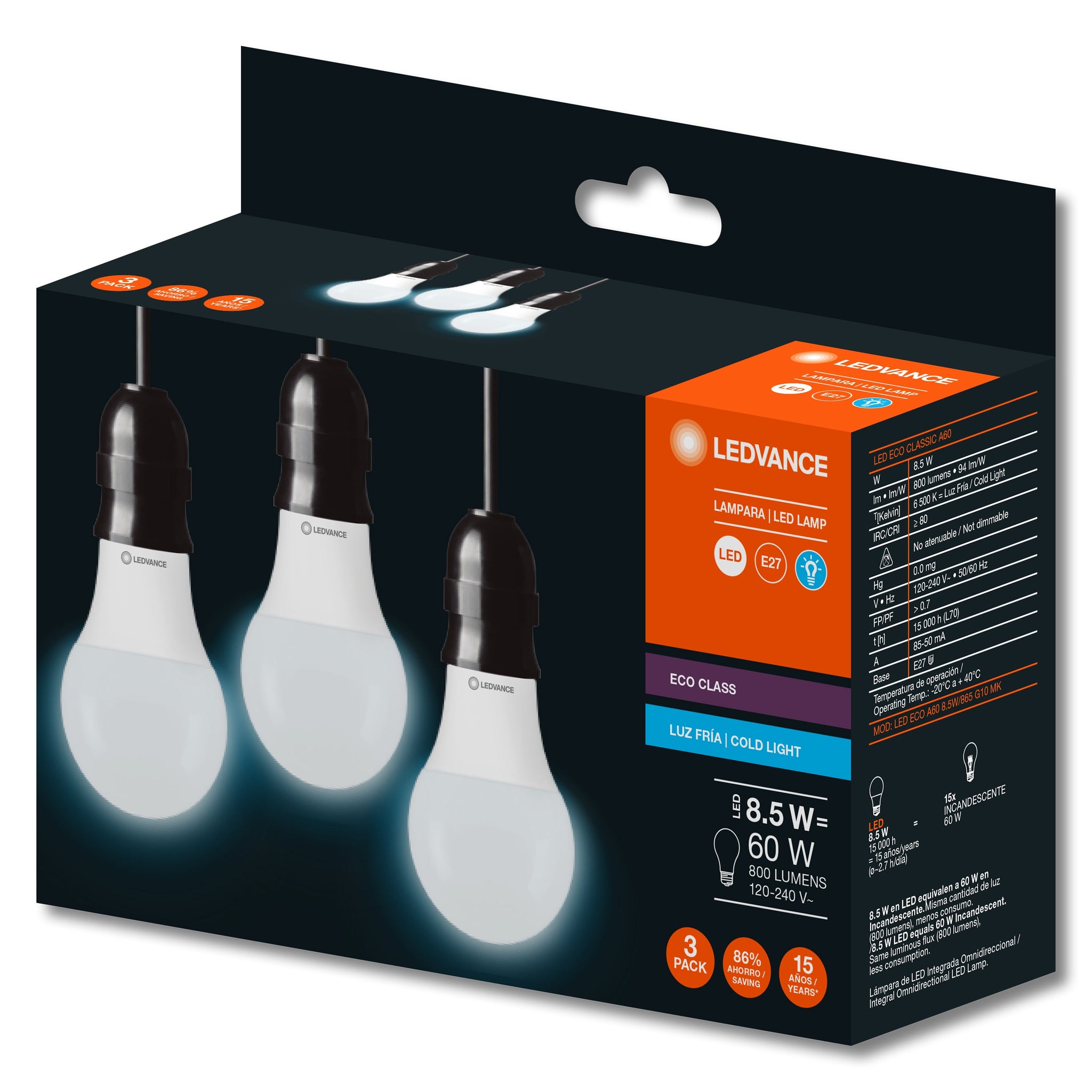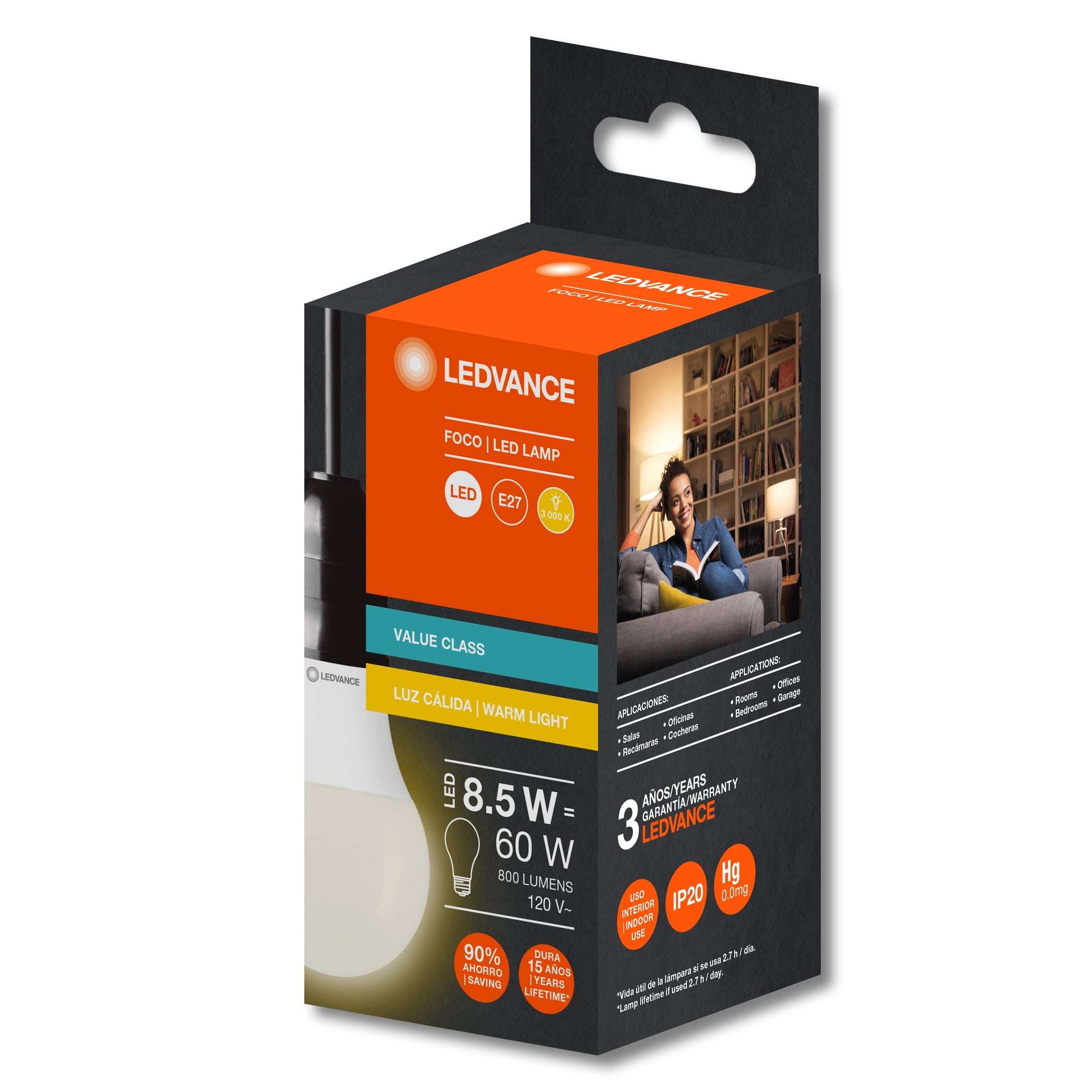 Familia de lámparas de LED ideales para iluminación general, disponibles en dos temperaturas de color: Luz Cálida (3000 K) y Luz de Día (6500 K). Cuentan con una vida útil de 10 000 horas y voltaje dedicado (120V~).