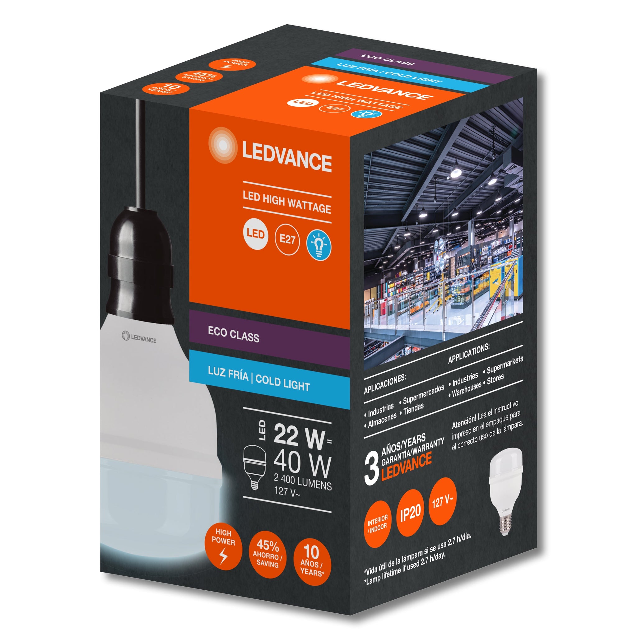 La familia de LED ALTA POTENCIA ECO con base E27 son una excelente sustitución de lámparas fluorescentes ahorradoras compactas, ofreciendo una solución funcional a tu alcance.