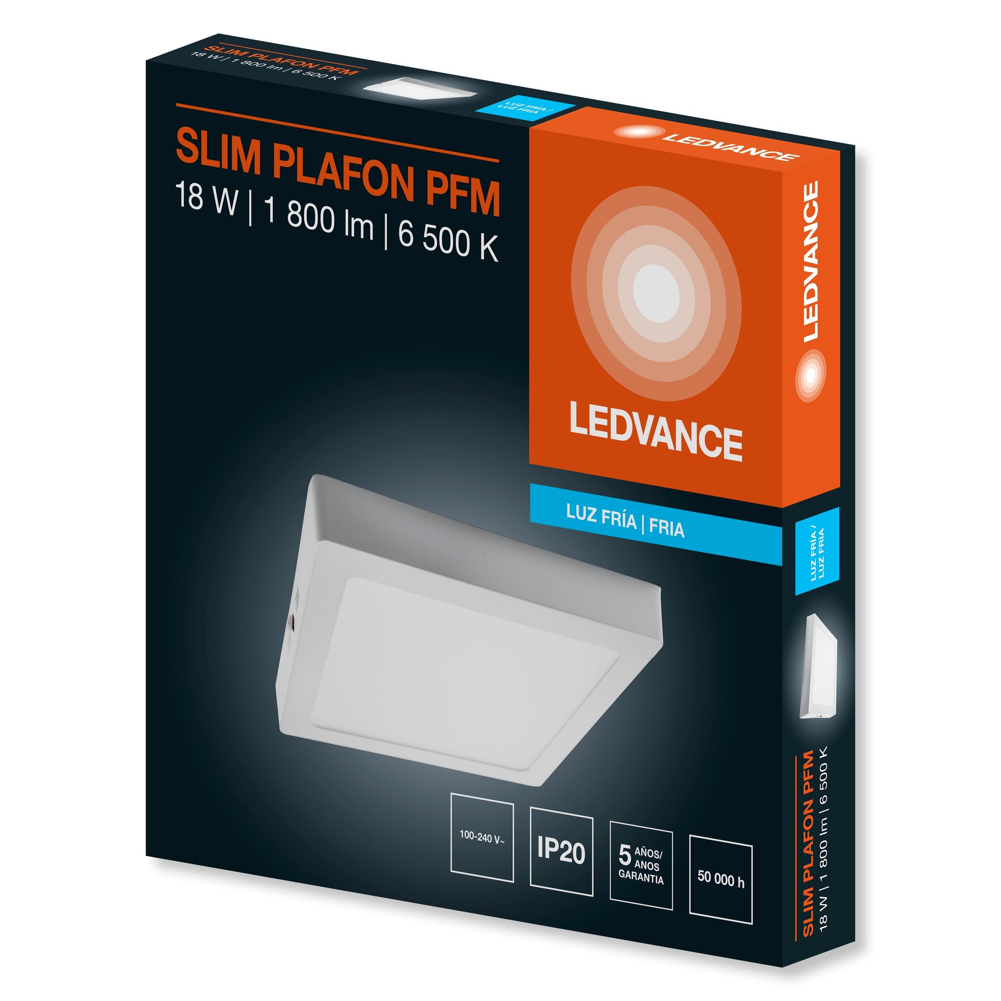 Luminaria de techo para sobreponer o empotrar tipo plafón, con diseño compacto y marco reducido que emite una luz homogénea a través de su difusor. Disponible en versiones redondo y cuadrado en dos temperaturas de color: Luz de Día (6500 K) y Luz Cálida (3000 K). De fácil y rápida instalación.